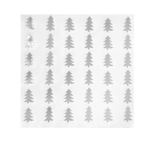 PAQUETE DE 20 SERVILLETAS DE PAPEL CON DISENO DE ARBOLES EN FOIL PLATEADO. PAPEL 3 PLY.