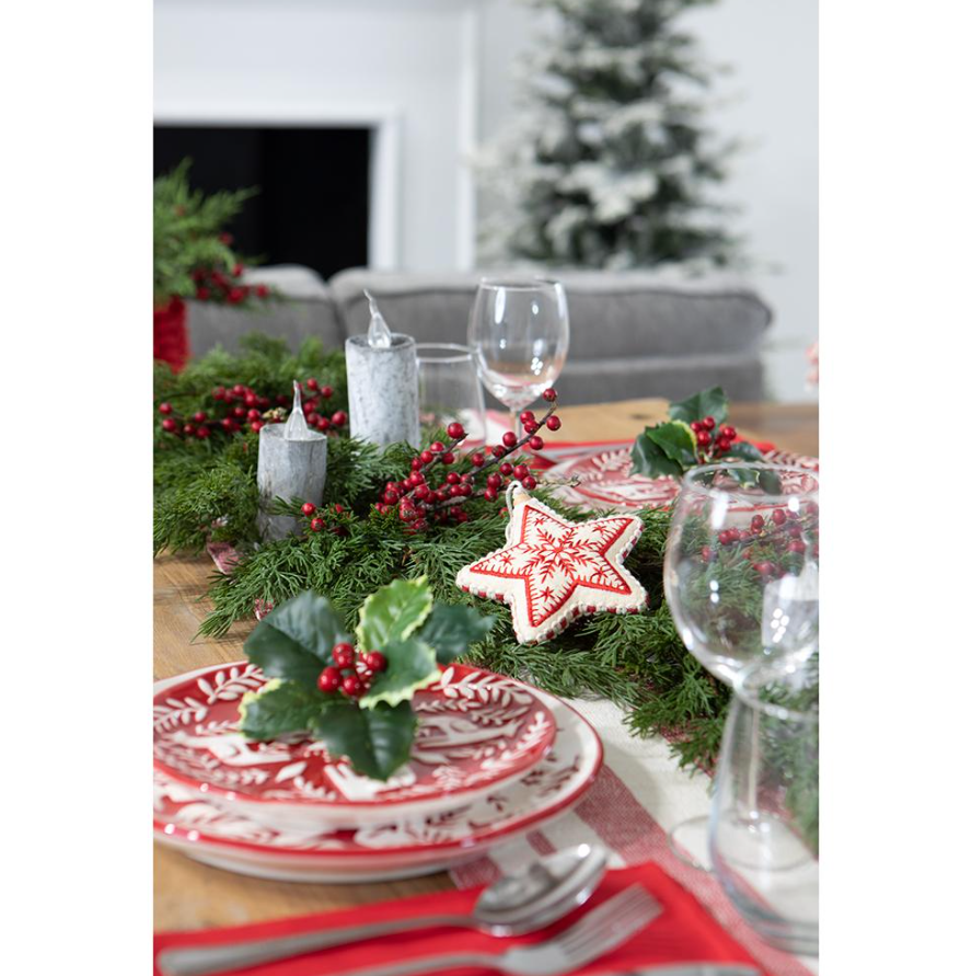 Vibrante y festiva, esta rama de bayas rojas es el complemento perfecto para realzar tus decoraciones navideñas. Su diseño detallado y color intenso aportan calidez y alegría, evocando el espíritu clásico de la temporada. Ideal para combinar con follajes verdes, pinos o flores artificiales, creando arreglos naturales y llenos de encanto.