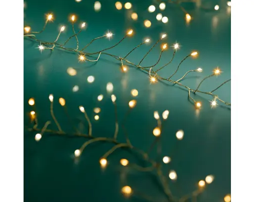 Descripción: Guirnalda de luces LED compactas con 8 funciones de efecto centelleante, apta para uso en exteriores