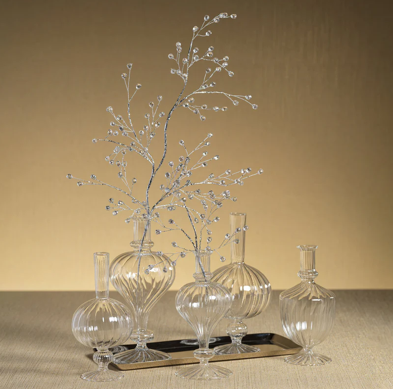 Añade un toque festivo con nuestro espiga con Cuentas de Vidrio. Esta pieza única de decoración navideña presenta cuentas transparentes y plateadas que aportan un aire de elegancia a tu hogar. Perfecto para dar un brillo especial a tu decoración navideña, este ramillete destacará en cualquier espacio.