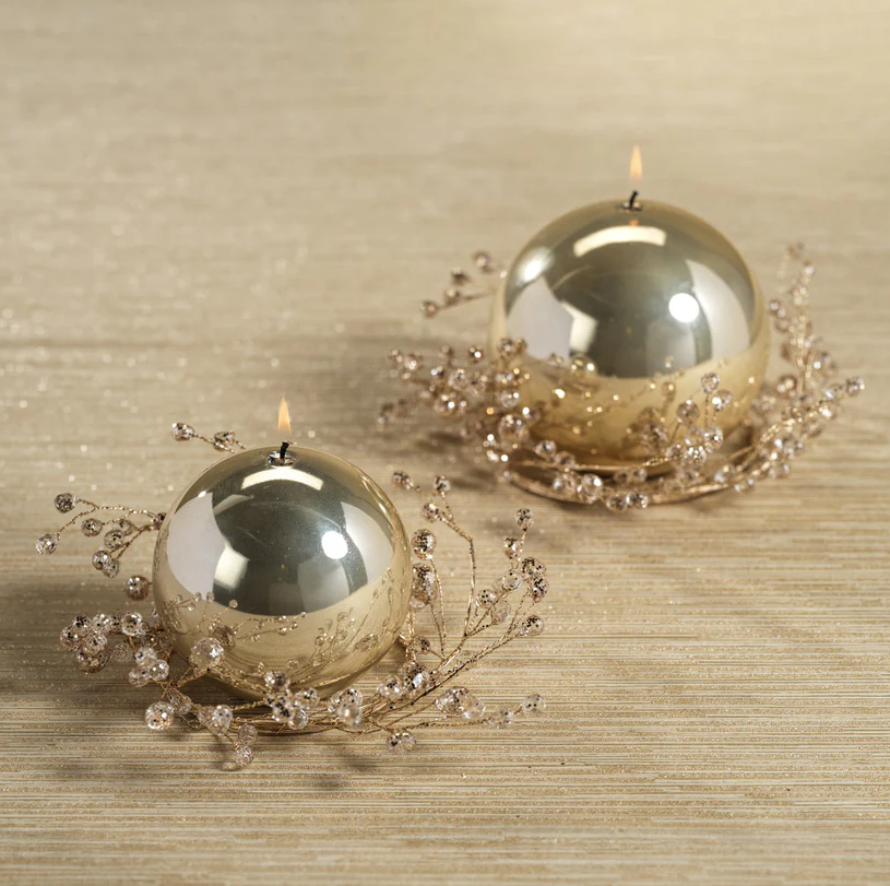 BEADED GLASS BERRY WREATH-CLEAR+GOLD