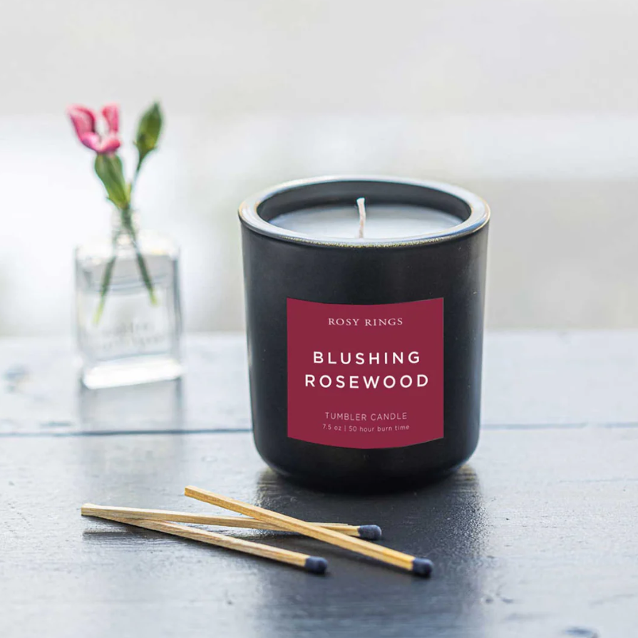 BLUSHING ROSEWOOD BOXED GLASS TUMBLER CANDLE